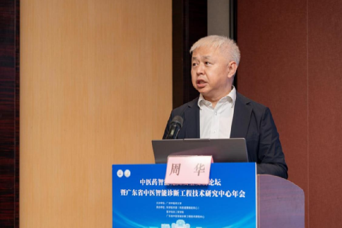 开幕式结束后,主旨报告环节顺利开展。南京中医药大学副董事长胡孔法、中医药广东省实验室副主任周华分别作专题报告。胡孔法聚焦中医药大数据融合应用,阐述了数据采集标准、存储架构及分析模型构建思路,分享了团队在临床数据挖掘、药物研发数据整合的实践成果,提出大数据驱动中医药智能化发展的创新路径。周华以“人工智能和自动化技术赋能中药研发——设计与实践”为主题,重点分析了两种技术融合赋能中药研发的重要价值,为相关技术的产业化应用提供新思路。两位专家的报告为后续分论坛研讨奠定了坚实基础。