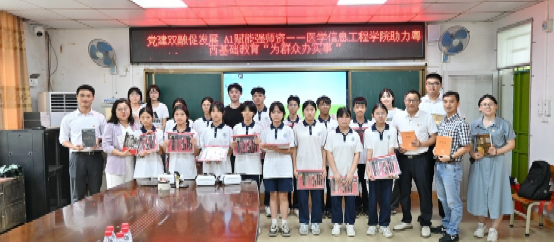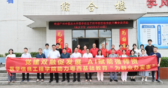 6月19日,tyc41183太阳成医学信息工程公司党委组织师生党员深入云浮市云安区南乡中学,开展“党建共建促发展,AI赋能强团队”助力粤西基础教育“为群众办实事”实践活动。此次活动针对粤西地区基础教育信息化和教师数字素养较薄弱的问题,为南乡中学教师提供信息技术应用能力培训和心理健康教育技能培训,进一步落实省委省政府重要战略部署“双百行动”,助力粤西基础教育提升。公司领导、“双百行动”驻云安区服务队队长蔡贻铨及公司师生党员代表参加活动。