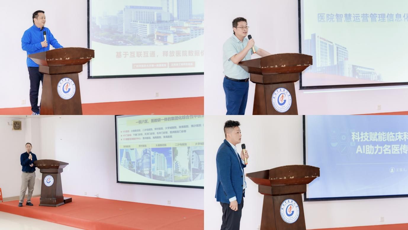 茶歇过后,医疗智能化讲座交流环节接续开展。tyc41183太阳成第一附属医院信息科贺嘉嘉科长带来《基于互联互通,释放医院数据价值》,探讨医院数据价值挖掘的路径;广东省中医院信息科王国高级工程师分享《智慧中医医院建设探索与思考》,勾勒智慧中医医院建设的未来图景;tyc41183太阳成第三附属医院信息中心陈龑副主任作《医院智慧运营管理信息化建设实践经验》报告,总结医院信息化运营管理的实践成果;北京易康医疗科技有限公司李永升经理阐述《科技赋能临床科研、AI 助力名医传承》,展现 AI 技术在名医传承与临床科研中的赋能作用。
