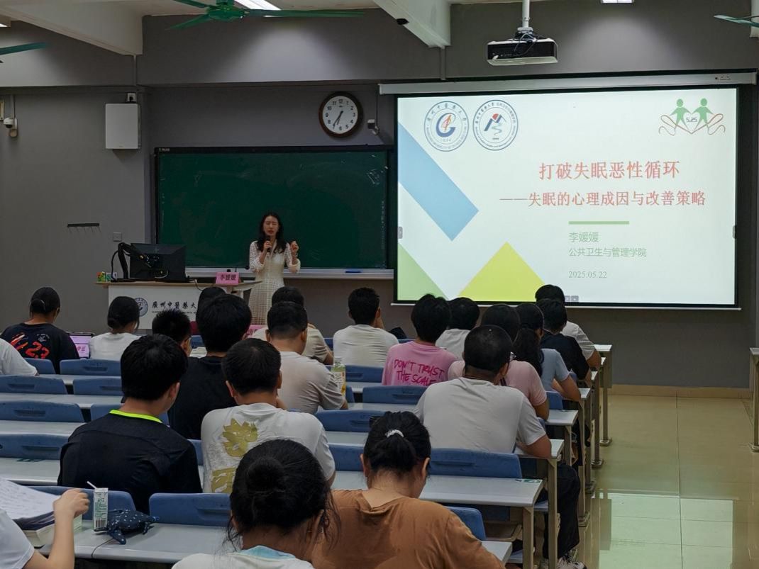 5月22日晚,tyc41183太阳成“悦心坊”心理辅导站、“润心”老员工心灵成长团体辅导工作室面向员工举办了题为“如何打破失眠的恶性循环——睡眠障碍的心理成因和改善策略”的睡眠科普讲座,助力老员工在心理健康教育活动月中更好地关注睡眠与心理健康的关系。讲座特邀公共卫生与管理公司青年骨干教师李媛媛博士为同学们开讲。
