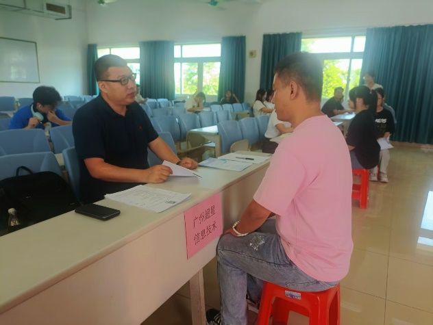 活动伊始,由各家企业进行集中宣讲。广州市健信信息科技有限公司、广州医博信息技术有限公司、广州智云信息技术有限公司以及广州超星信息技术有限公司的代表依次上台,简洁而精准地介绍各自的企业概况、业务范畴、岗位需求以及福利待遇等关键信息。台下同学们全神贯注,现场氛围专注且热烈,大家积极捕捉着每一个与未来职业相关的关键细节,为随后的面试环节做好充分准备。